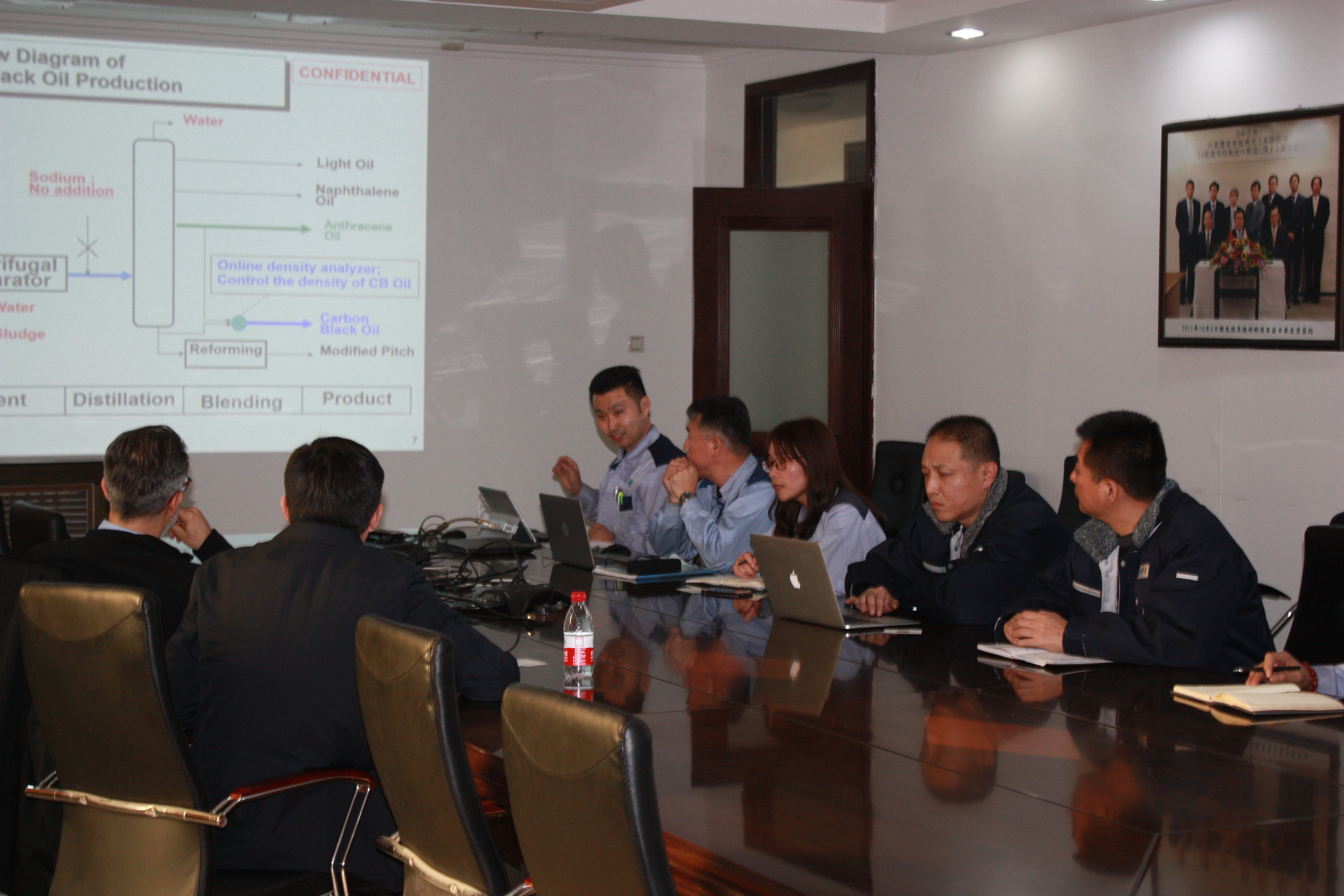 Cottrell Todd一行首先在會議室進行座談,詳細了解杰富意公司基本情況,主導產品組成架構,焦油、炭黑油、蒽油等炭黑原料油的成分比例、數量等情況及后期炭黑的市場預測、炭黑原材料市場趨勢等。并依據山東杰富意公司和棗莊杰富意公司實際制定了較為詳細的國內炭黑油和蒽油的銷售方案,對蒽油出口印度博拉工廠的設想達成了共識。隨后,Cottrell Todd一行到現場進行了實地參觀,對炭黑油、蒽油的質量把控、庫存量、裝車設施、計量設施進行詳細了解,對企業的發展給予認可。博拉炭黑方表示,作為老客戶將在2020年建立更加穩固的戰略合作關系。