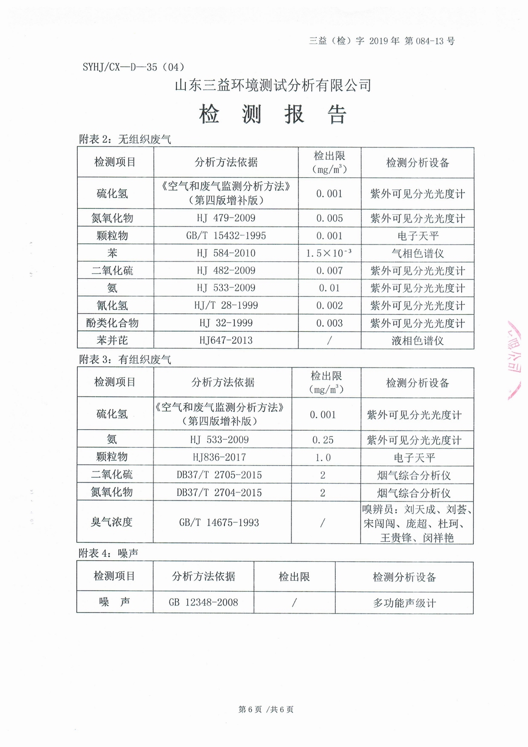 山東濰焦集團薛城能源有限公司6月份檢測報告