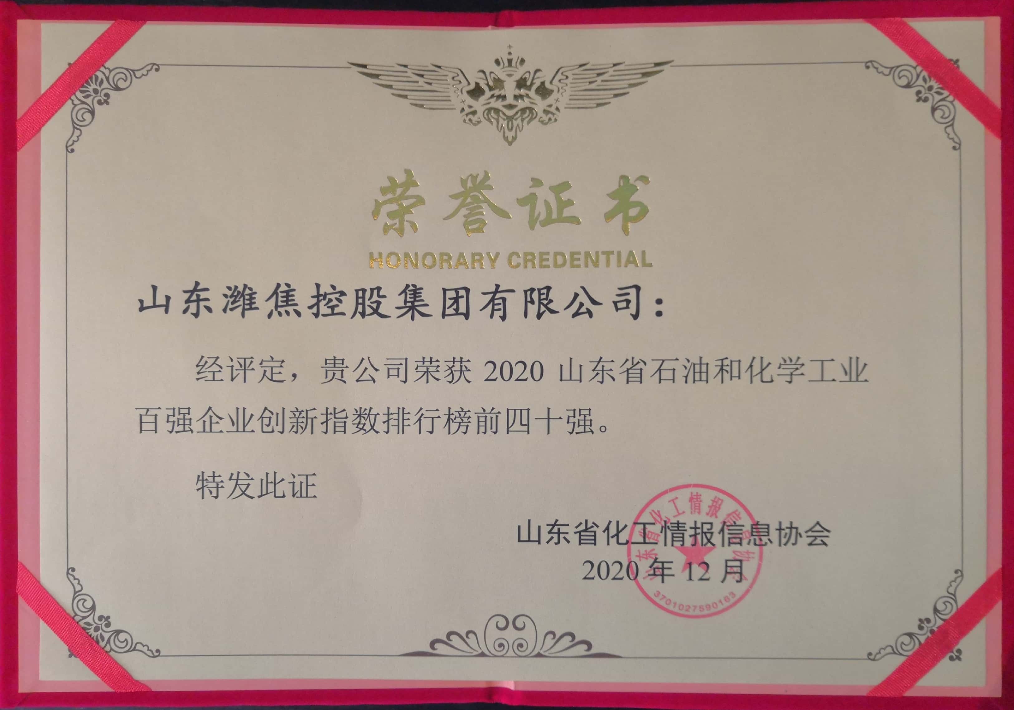 12月16日至17日,由山東省化工情報信息協會主辦的2020(第十屆)中國化工產學研高峰論壇在東營廣饒召開。會上,集團公司榮獲“2020山東省石油和化學工業100強企業”稱號,并在百強企業創新指數排行榜位列35位。